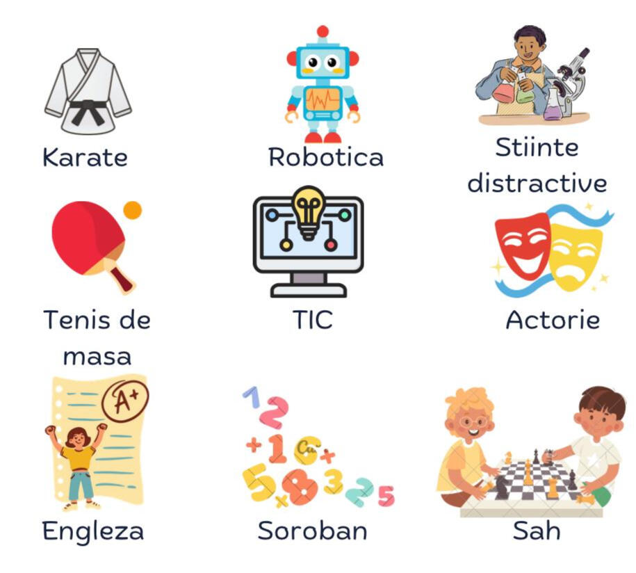 Pe lângă pachetul de bază, copiii pot opta pentru activități suplimentare care le dezvoltă pasiunile, creativitatea și abilitățile sociale. Acestea se plătesc separat și pot fi alese în funcție de interesele fiecărui copil.